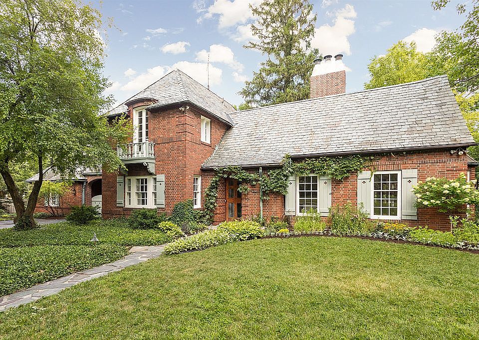 This 1928 English cottage harmoniously balances original features with modern upgrades and mechanicals! Situated on one of the larger corner lots of the Westwood neighborhood, the home has many eye catching features such as the slate roof (recently inspected and upgraded), Juliet balcony, large patio, and board and batten shutters with cutouts. The grounds include a tree house, sport court, potting shed, several gardens, updated landscaping, and detached garage (finished into additional living space, but could be converted back). Inside, visitors are greeted by original hardwood, oversized mantle with custom design, and numerous gathering spaces. Kitchen has two tone custom cabinetry, stone counter top, open shelving, large island, updated fittings, new Culligan system, and state of the art appliances. 1 upstairs bathroom has been completely renovated as well, featuring custom handmade vanity with Koehler quartz undermount sinks, custom designed lighting, roll outs in additional storage, and oversized tub. Other recent improvements include new double hung windows in much of the home, main electrical panel, mini split system in sunroom, fresh paint, new water softener, Koehler toilet in powder room, egress added to basement living area, carpet in one bedroom, updated lighting in foyer and dining room, custom bed built into one upstairs bedroom. Dining room curtains are reserved.
