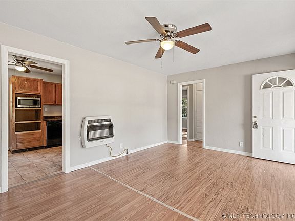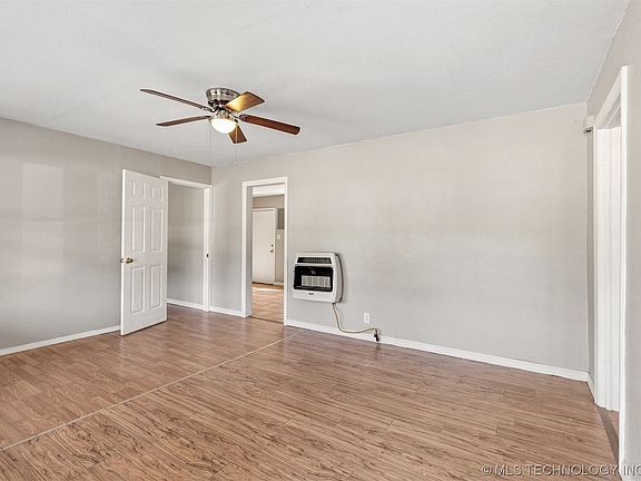 Here's your chance to own a move-in ready gem in Muskogee! Offering 3 bedrooms and 1 bathroom, this upgraded home welcomes you with fresh paint throughout. Experience modern comfort with brand new mini-split air conditioning units that ensure energy-efficiency. Additionally, this property features an all-new electric panel for your peace of mind, and all kitchen appliances are included! The exterior showcases both durability and style with vinyl siding and vinyl windows, which enhance curb appeal and ensure easy maintenance and upkeep. As a bonus, this home boasts some original hardwood flooring and build-in storage, adding warmth and character. Step into the large, fully-fenced backyard, which provides an ideal space for gatherings, play, and relaxation. Don't miss the opportunity to make this charming, move-in ready home yours!