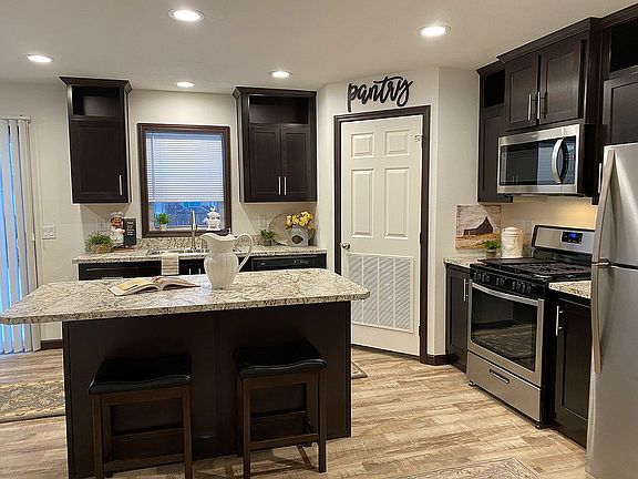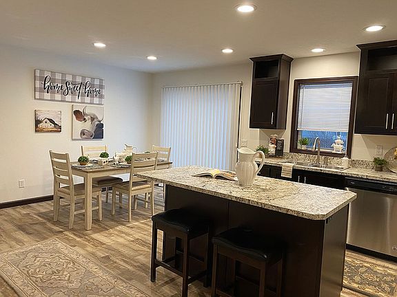 EASY, ONE-LEVEL LIVING in this NEW move-in ready home! It features lots of eye-appeal with a modern, contrasting color palette, elevated ceilings and stylish fixtures. The floorpan is highly functional with wide doorways and spacious, fully-sheetrocked rooms throughout. The kitchen is loaded with stainless steel appliances, large island, recessed lighting and lots of cabinetry and counterspace. The dining room has patio doors that walk out to the backyard. All 3 bedrooms are spacious with ample closet space. The primary bedroom features a large walk-in closet and the adjoining full bath offers a wonderful retreat from the day's stress with a seated shower and a soaker tub. There may be room to construct an attached single garage (refer to city for code requirements). Woodlands Park is a quiet, wooded park in south Mandan. This home must stay on the lot and cannot be moved for 4 years after purchase. Call your favorite Realtor for a private showing.