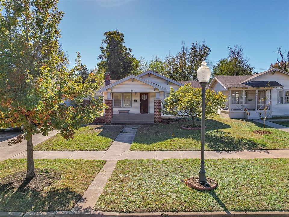 Living in the Historic Preservation neighborhood, Mesta Park, means you’re part of a vibrant, walkable neighborhood with tree-lined streets and historic architecture. This Bungalow presents sought-after historic features including the original stained wood built-ins alongside the fireplace, wood trim and oak floors. A new roof installed in January 2025! The little wrap around porch makes for great porch sits. There are two bedrooms, one features french doors and the other has an attached small room that could be an office, etc. The bathroom has a clawfoot tub, pedestal sink, and toilet. The spacious dining room features plenty of natural light. The kitchen has a little breakfast nook area, original cabinetry and wood countertops. The laundry room is just off the kitchen and has a nice new back door to the spacious backyard, featuring a two car garage. Uptown 23rd Street shopping district borders the neighborhood to the North, and Midtown borders the neighborhood to the south. Just minutes from downtown, shopping, and dining, this home provides excellent urban convenience. The neighborhood features Perle Mesta Park, which features a playground, volleyball courts, nice landscaping, a mini amphitheater, and gazebo.