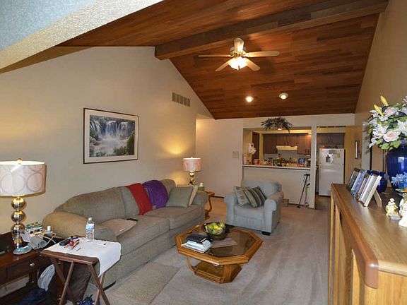MOVE RIGHT IN AND START ENJOYING THE EASY CONDO LIFESTYLE!!! A welcoming living room with charming gas fireplace, vaulted ceilings with recessed lighting makes this condo bright and spacious. Galley kitchen with separate laundry room. Large Master Bedroom with walk-in closet. 2 generously-sized bedrooms are located at separate wings of the condo. 2 full baths with shower/tub. For your convenience, there is a heated, detached 2 car garage. Newly replaced roof in 2015. Condo Association fees cover lawn care, snow removal, garbage pickup and exterior insurance.