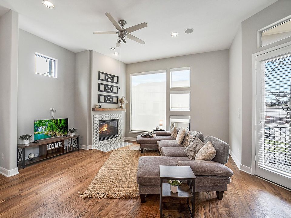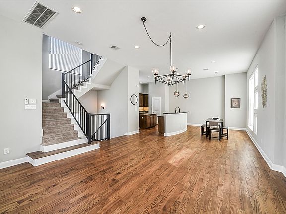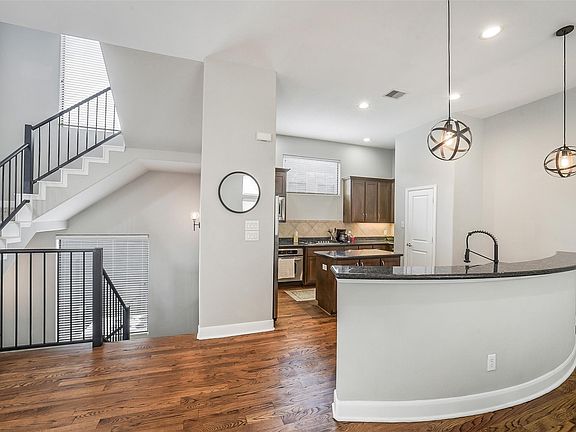 Experience contemporary city living in this stunning 3-story home located in Rice Military. Features include an open-concept layout, 12' ceilings, abundant natural light, hardwood flooring, 3 bedrooms, and 3.5 baths. The spacious kitchen is perfect for entertaining, offering ample cabinet and counterspace, stainless steel appliances, a center island, and a curved breakfast bar overlooking the dining and living areas. Huge primary suite complete with a frameless glass shower, jetted tub, and walk-in closet with custom closet system. Refrigerator, washer, and dryer are included. 2 car attached garage, plus reserved resident-only parking permits. Walking distance to restaurants and nightlife, and conveniently located just minutes from I10, Downtown, Memorial Park, and more.