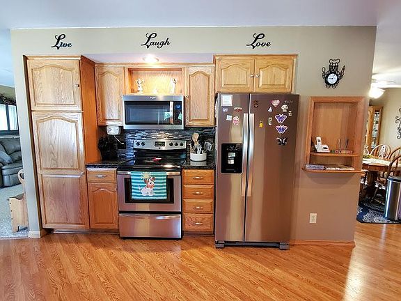 Exquisite rambler home located on large corner lot in Lake Mills. Almost every surface of this home has been remodeled over the course of 20 years. Exterior of the home has impeccable landscaping, two separate patios, and a triple stall insulated attached garage. Upon entrance from the garage you will find an expansive kitchen, complete with beautiful custom cabinetry, modern concrete countertops, and a sit up bar. Adjacent to that, a separate dining room for additional seating and a large cozy living room. There are three bedrooms on the main level, with the master on opposite side of home from the other two, and one full bathroom. The 18x22 master boasts a gas fireplace and a large armoire (custom built) that will stay in place of a closet. The downstairs is fully finished to include kitchenette, massive family room w/gas fireplace, guest bathroom, 4th bedroom with private en-suite. All the work has been completed for you here, all that is left to do is MOVE!