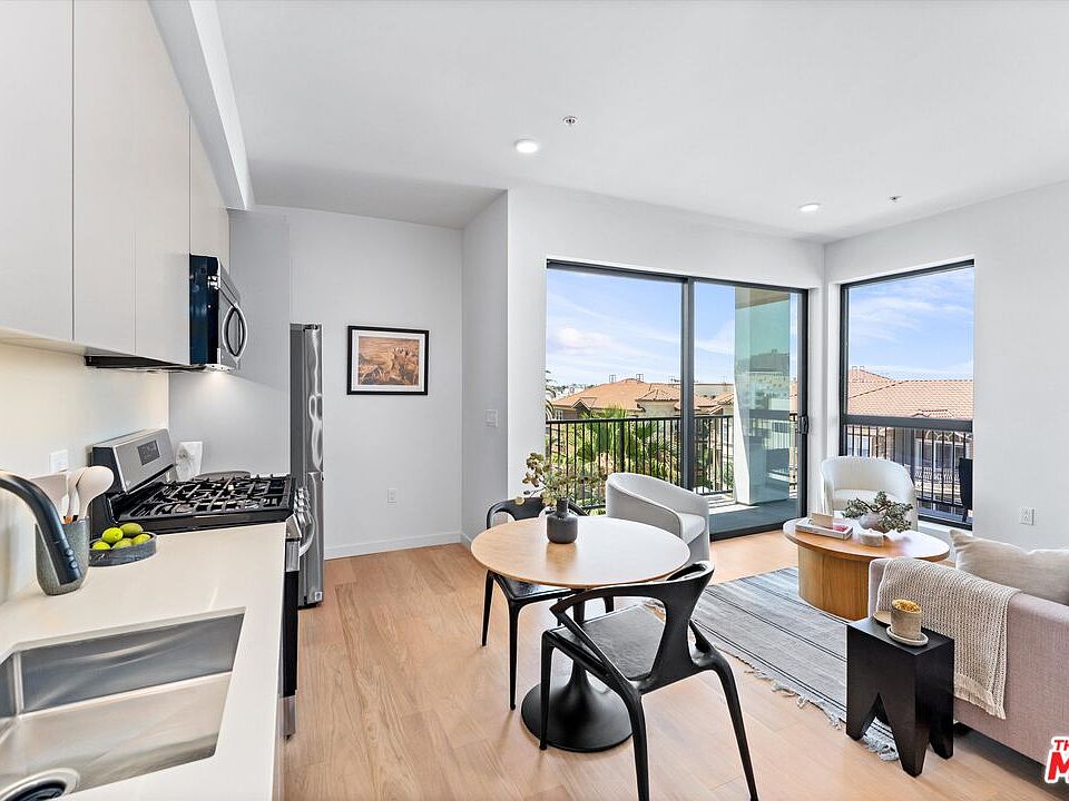 Corner one-bedroom residence with a beautiful wraparound balcony in Mosaika, a brand-new condominium community that blends contemporary sophistication with thoughtful functionality in one of Los Angeles' most vibrant and walkable neighborhoods. This light-filled home features an expansive open layout, floor-to-ceiling windows, concrete floor, and hand-selected designer finishes. The kitchen boasts custom cabinetry and premium appliances, while the spa-inspired bathroom includes a sleek vanity and elegant tile details. Enjoy an oversized balcony perfect for relaxing or entertaining. Residents of Mosaika enjoy boutique-style amenities, including a fitness center and a rooftop sky lounge with BBQ area, lounge seating, and panoramic city views. Mosaika where style meets substance and location meets lifestyle offers an exclusive living experience in the heart of Los Angeles.