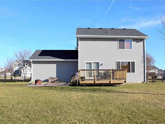 This move-in ready 3 bed, 2.5 bath home is located in a great south Grimes location. The main floor flows from the spacious kitchen w/SS appliances, plenty of cabinetry & breakfast bar, to the dining area & on to the family room w/cozy fireplace & large windows letting in plenty of natural light. A den w/french doors perfect for a home office or playroom & a half bath complete the main floor. Upstairs you'll find 3 bedrooms, including the large master suite w/full bath, linen closet & walk-in closet, a 2nd full bath & conveniently located laundry room. The oversized deck, stamped concrete patio & large, fenced in yard provide great outdoor space. The lower level provides plenty of storage & is ready to finish to meet your needs. Other perks incl. fresh paint throughout, new roof, gutters & downspouts in 2017, whole house humidifier, blinds throughout, built-in garage shelving, mature perennial landscaping & all appliances stay, incl washer, dryer & bsmt fridge!