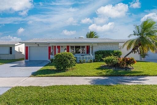 Nice single family home, split floor plan with 2 master suites. Large Bedroom has oversized walk in closet. One car garage, double driveway, partial accordion shutters. A/C 2021, large patio area in front and back home.Beautiful and very well maintained community. Low HOA fee that includes exterior painting and power washing for home and roof, lawn care, sprinklers, security patrol.Amenities includes 3 heated pools and 3 clubhouses, fitness center, library, game room, BBQ/picnic area and free private golf course.