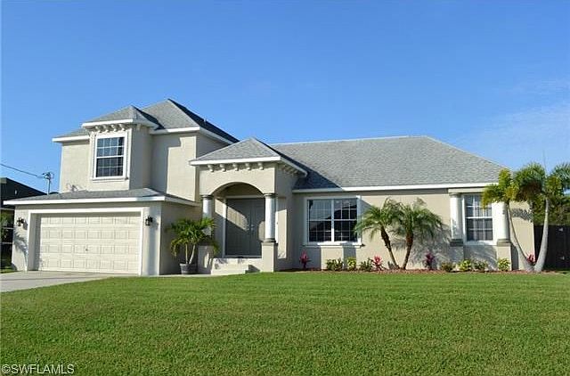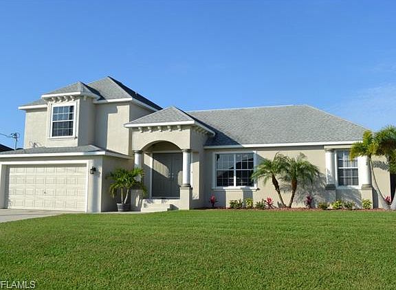 Beautiful better than new home in true move-in condition. 3 Bedrooms, 2 Baths. Unique floor plan includes second floor master with loft area that can be used as home office or sitting area. Home recently upgraded with new exterior paint, new 20" porcelain tile on the diagonal, epoxy finish on garage floor. Tasteful custom interior paint colors. Nice sized kitchen includes solid surface counter tops, stainless steel appliances. Master bath offers separate shower and soaking tub. Under truss screened lanai leading to private fenced yard and the fence has been freshly stained. Lush green lawn and room for a pool. Desirable SW rear exposure. Super neighborhood in a convenient SW Cape location close to shopping and restaurants along Santa Barbara and Pine Island Rd. City utilities already in place. Brokered And Advertised By: RE/MAX Realty Team Listing Agent: Tom Demogenes