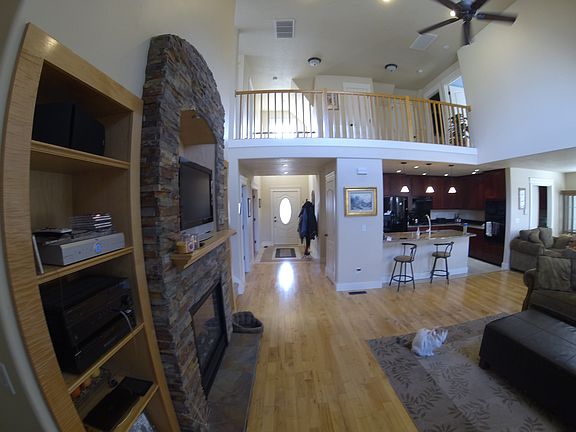 Stunning home in quiet neighborhood with hardi-plank siding, custom tile entryway, high ceiling, and open floor plan. Kitchen includes granite countertops, Beechwood cabinets and eat in bar. Maple floors and stacked stone fireplace set the tone for the quality home. Main level master with his and her closets and large bonus room are key features. Amazing backyard with covered and open patio space Hot tub included!
