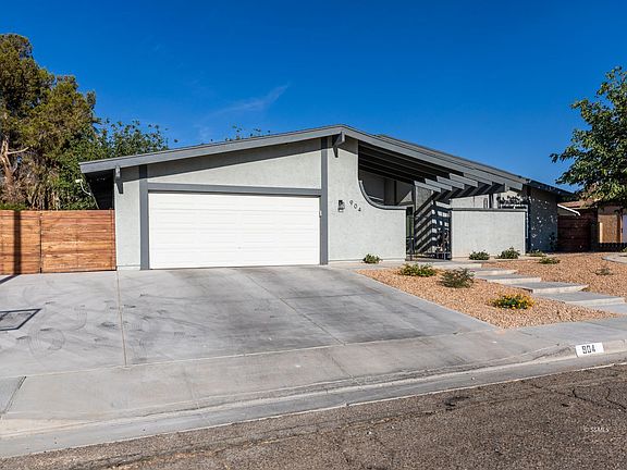 This 4 bedroom 2 bathroom home features an xeriscape front yard & an oversized driveway. The gated courtyard adds additional outdoor space to enjoy. The double door entry opens to the formal living room which hosts towering vaulted ceilings, large wood burning fireplace & windows stretching up to the ceiling. Newer LVP flooring in the entry, hallway, dining, family room, kitchen & bathrooms. There is a large formal dining room off of the living room. The family room is open to the kitchen. The kitchen has been remodeled/expanded to include a 4' x 7' island with seating. Kitchen has Corian countertops/ frameless cabinets & stainless appliances including fridge, dishwasher, stove, microwave hood & standalone ice maker. Indoor laundry room. The hall bathroom has an updated vanity & tub with tile shower surround. The 3 guest bedrooms have carpet flooring & ceiling fans. The spacious main suite has LVP flooring, vaulted ceilings, sliding glass door to the back patio & large walk-in closet. The main bathroom has an updated vanity & tiled walk-in shower with rain glass doors. Large east facing back patio. Firepit area. Blockwall fencing. Concreted R/V parking. Newer windows! Owned solar!