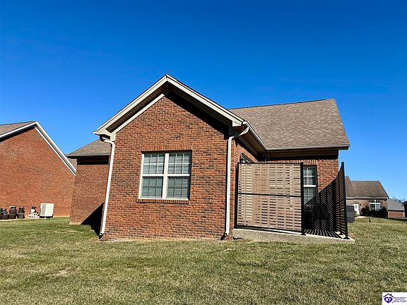 This beautiful brick 3 bedroom and 2 bath home and has vaulted and 9' ceilings. It sits in a quiet neighborhood right across from a park setting. Conveniently located near I-65, Fort Knox, and Glendale, it is move-in ready! Granite countertops, new primary bath walk in shower, newer wood plank flooring, newer appliances, newer HVAC and hot water heater delivers a low maintenance home. The sunroom sits in the back overlooking Freeman Lake Park and is ideal for a family room, office, or dining room. It has a gas propane free standing fireplace.
