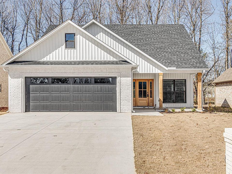Luxury Modern Farmhouse for sale in Summit Ridge, this home has luxury plank vinyl flooring throughout and granite island kitchen, covered porch, open concept split bedroom arrangement and double garage. The easy to care for yards make this perfect for any buyer, maintenance free exteriors, and central location set these homes apart in a brand new subdivision in Paragould off barnhill road. Taxes are lot only