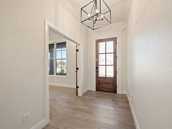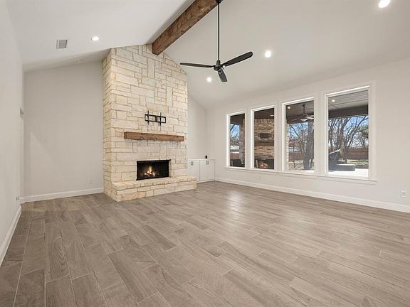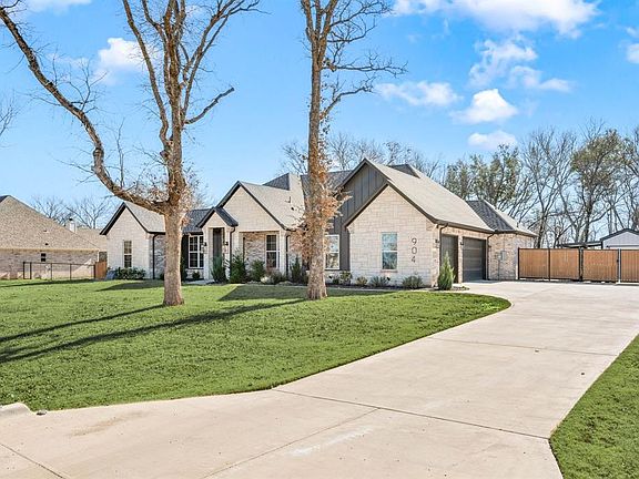 Stunning Barely Lived-In Retreat with Resort-Style Amenities! Discover this exceptional 3-bedroom, 2.5-bath home in sought-after Springtown, TX. This elegant residence seamlessly blends modern luxury with unparalleled comfort. The open-concept layout boasts a gourmet kitchen with designer finishes and a spacious living area accentuated by a wall of windows, offering captivating views of the resort-style backyard. The split bedroom floorplan ensures privacy, while a dedicated office space caters to all your remote working needs. Step outside to your personal oasis: a large covered outdoor living area complete with a corner fireplace. Enjoy endless summers in the saltwater pool with an exquisite water feature, or entertain effortlessly at the covered bar area. A large shop or storage shed provides ample space, all within a fully fenced, private backyard set on over an acre. This dream home offers peace, luxury, and convenience.
