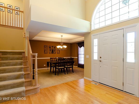 This elegant, bright & spacious home is on a premium lot backing up to protected woods. 1st floor features open floor plan, vaulted ceilings, brick fireplace, maple hardwood floors in pristine condition, renovated half bath, 42" maple cabinets in kitchen, breakfast bar, dinette & large den. Its full finished walkout basement is truly captivating in design and detail, w/luxurious custom-built wet bar & rec room. Pool table, pub tables, custom bench, commercial-grade bar stools, & mini-fridge are included! There is also a sound-insulated multi-purpose room, perfect for a playroom, home theater or exercise room. 2nd floor has 4 bedrooms, 2 full baths, 3 walk-in closets. Vaulted ceiling & skylight brighten the master bath, w/oversized Jacuzzi tub. 3-car tandem garage provides abundant storage space. Located on quiet dead-end street, only 5 min from I-90 & Metra station. Original owners have resided here for the life of the house in pet-free, smoke-free environment