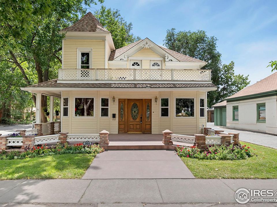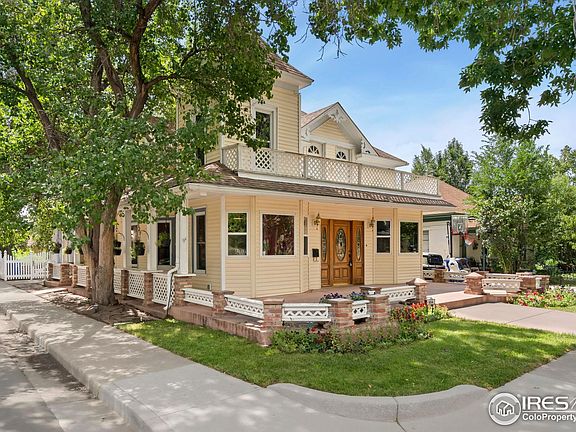 A true Victorian treasure in the heart of Loveland's most desirable neighborhood! This one-of-a-kind, corner lot home is packed with history, charm, and thoughtful updates. Bursting with character and unique details that you have to see in person, it's the kind of home that makes a lasting impression. Over the last four years, this home has seen plenty of updates that make it truly move-in ready while still keeping its timeless personality intact. Inside, the main level offers well-defined spaces with refinished hardwood floors underfoot. The kitchen has been fully remodeled with quartz counters and stainless steel appliances, while the renovated bathroom adds a spa-like touch with a glass shower and freestanding tub. The formal dining room provides access to the wrap-around porch, creating the perfect setting for hosting dinners and gatherings. The home features four bedrooms, including two primary suites (one on the main level), offering space and flexibility for a variety of living arrangements. There's also a private balcony upstairs complete with a new weather-proof floor mat that makes for a peaceful retreat. Out back, a large flagstone patio offers plenty of shade, creating an ideal spot for lounging or entertaining. The property also includes a 292sqft workshop and a 300sqft detached garage, offering substantial space for hobbies, storage, or parking. All of this sits just minutes from Lake Loveland, Centennial Park, and the Big Thompson River Open Space, making it easy to enjoy the outdoors and the city's best amenities. This experience is not to be missed! Schedule a showing to explore this hidden gem and take in all the character, charm, and updates it has to offer.