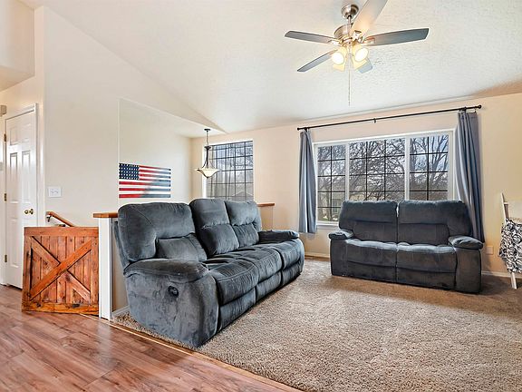 Hard to find 4 bedrooms in this price range! Enjoy 2 living spaces with 2 bedrooms & 1 bath upstairs and 2 additional bedrooms and 1 bath downstairs. Open floor plan with kitchen island and large wood deck off of dining room. Fully fenced backyard with large shade trees and large concrete pad. Quiet neighborhood - home is NOT on a busy main street.Subdivision has a large grassy common area with newer playground and swings. AIRDUCTS CLEANED IN 2022 & NEW A/C in 2022