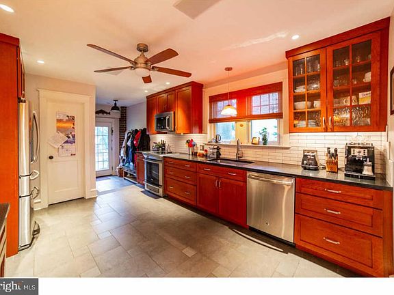 Character meets style in this 1925 cape cod in the desirable West Ward of Lansdale. As soon as you walk through the door you'll be drawn to the gleaming original hardwood floors spanning the living and dining rooms. On those cool evenings, the pellet stove in the dining room will keep you warm, while offsetting your heating costs. The kitchen is a chef's dream! Complete with custom Village Cabinets, granite counter tops, stainless steel appliances, beverage center, pantry and radiant heat floors, this kitchen will not disappoint. With the seamless connection to the large dining room, parties and holiday gatherings are a breeze. A main floor bedroom, half bath and bonus room off the living room complete the first floor. Upstairs the master suite awaits! This 4 year new addition boasts large bedroom with hardwood floors, walk in closet with organizers, and private bathroom including shower stall with bench and radiant heat flooring. Two additional bedrooms, also with gleaming original hardwood floors, storage area, and main hall bath finish off the second floor. The basement offers plenty of storage for all your extras, as well as laundry needs. Stone patio and expansive backyard offer the perfect place to relax by your firepit or entertain family and friends. The oversized 1 car garage will keep your car out of the elements all year long. Convenient location within walking distance to train and York Ave Elementary. Don't miss this rare opportunity to own a detached single family in the sought after West Ward!