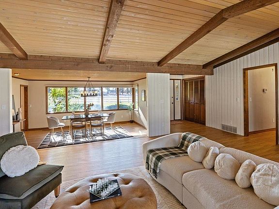 Discover the perfect blend of elegance and functionality with this stunning mid-century modern rancher, nestled on a sprawling 10-acre parcel in an area appropriately named Paradise Rim. This exceptional property features 6 spacious bedrooms and 3.5 baths, encompassing 4,100 sqft, with 2,382 sqft conveniently located on the main level. Step inside to find unique architectural details, including beamed ceilings, sunken formal dining, cozy fireplace in the gathering room, as well as a charming hearth room off the light-filled kitchen. The well-appointed kitchen provides informal dining, large pantry, double ovens perfect for culinary enthusiasts. Outdoor living is at its finest with a covered back porch that overlooks a sparkly gunite pool, ideal for summer gatherings. This property is fully set up for horses, featuring a horse barn, equipment barn, run-in shed, and a round pen, all within a beautifully maintained landscape of partially treed and expansive rolling fields.