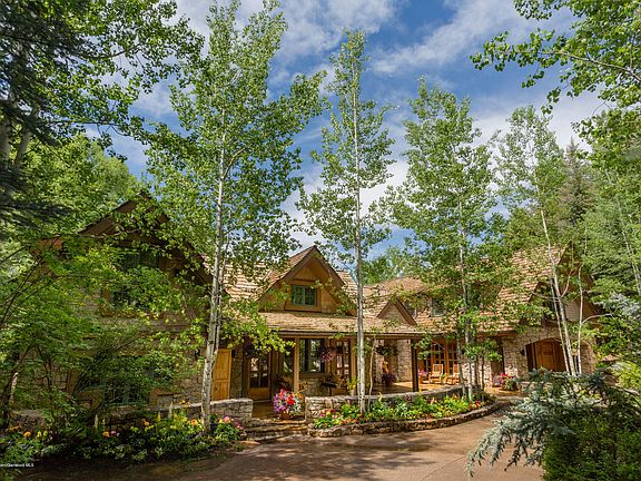 Elegant mountain estate privately situated in a grove of evergreens and Aspens, this home is the ultimate in privacy, proximity to town, and all-encompassing views. Located on coveted Willoughby Way, the finely crafted 7,791 square foot home has pristine views of the Continental Divide, Ajax, Highlands, Pyramid Peak, Tiehack, and Snowmass. Filled with light, the home fluidly incorporates a chef's kitchen, a study, a state-of-the-art home theater, and exercise rooms in its thoughtful floorplan. The outdoor living space echoes the beauty of the home with lush landscaped terraces for dining and lounging, an outdoor spa with direct access from the master bedroom, and private access to the Rio Grande trail.