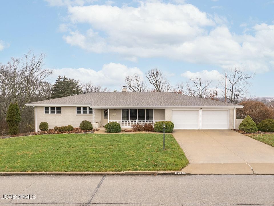 Comfort, charm and convenience awaits in this all-brick, beautifully maintained, 3+ bdrm/2 bath, ranch home neatly nestled on a half-acre, corner lot. Inside you will find beautiful hardwood floors flowing throughout the main living areas of the home, and spacious rooms with newer vinyl windows that glow with natural light. The eat-in, galley kitchen has an abundance of cabinets and countertop space, tile backsplash, quick access to laundry room and convenient desk area. Adjoining the kitchen is a cozy hearth room with fireplace flanked with tile and book-casing surround. The primary bedroom boasts dual closets, plenty of room for a king-size bed and additional furniture, and recently remodeled bathroom with vanity area, linen cabinet, and step-in Onyx shower with seat. Gather friends and family in the all-season sunroom or take the fun outside to the massive 24'x24' deck with custom built-in chimney grill—perfect for entertaining large groups for summer BBQs. The expansive finished basement is sure to impress with a stately gas fireplace, corner wet bar with lots of seating, 4th non-conforming bedroom, full bath, storage area with shelving, and plenty of space for game tables, work out equipment, etc. Additional amenities include: original hardwoods under carpet in bedrooms; new roof, HVAC, water heater & main level bathroom remodel in 2019; new hardwoods and basement carpet in 2020; blown Insulation added in the attic; garage floors and front porch with custom epoxy flooring; reverse osmosis system installed in kitchen. This home is waiting to be yours!