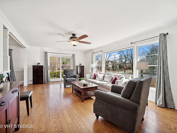 Elegant, easy, comfortable living is offered by this meticulous custom-built home with tasteful updates in the ever-popular Glen Oak Acres. Sitting on a beautiful 1/3-acre wooded lot, this brick and stone home has generous room sizes and loads of oversized windows drenching the home with light. Large bright foyer opens to both kitchen and the gracious living room, which has hardwood floors, super large windows and gorgeous architectural detail in the arches and moldings. An open concept feel extends to the dining room which has a wall of windows, hardwood floors and wainscoting with low wood panels. Spacious white and quartz kitchen has all stainless appliances, including French door fridge and farmhouse sink. Wood trimmed sliders open to one of the two outdoor entertaining areas. The second floor provides three good sized bedrooms with abundant closet space, bright windows and hardwood floors. Oversized bathroom is designed with white and gray ceramic tiling, and bath with shower caddy inset. The lower level has a fantastic family room (with gray panel walls and high ceilings), perfect for play, entertaining and a great chill space with its wet bar and large stone fireplace. There is a full bath on this level with stone tiled shower and large bright window. Full mechanical/laundry room leads to double size crawlspace for fabulous storage opportunities. Walk up to main outdoor patio, surrounded by both ground level lighting and uplighting on lush trees and shrubs. The evenly proportioned large square lot is filled with lovely plantings, and mature deciduous and fir trees. It is a fully fenced yard and has a great storage shed for all your outdoor equipment. Oversized two car garage is equipped with well-organized storage areas, and both water and gas lines. Updated electrical and copper plumbing, and new HVAC (2022), This lovely home is located in desirable Glen Oak acres, and is close to schools, cool restaurants, fun shopping, the unique and family-friendly Wagner Farm, walking trails to Cole Park and the Glenview Park District Tennis Club. Live with all the best the Northshore has to offer and get ready for fun times this summer!