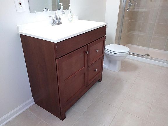 Terrific basement apartment with 2 large bedrooms, new bathroom, good-size kitchen and L-shaped living/dining area plus a nook that's great for an office- or work-out-area. Private entrance and private laundry room w. full-size washer and dryer. Laminate wood floors + radiant floor heat. Central A/C. Less than 5 minutes from I-70 and downtown Mount Airy, yet on a quiet country-road that dead-ends at a State Park. One well-behaved dog accepted on a case-by-case basis (subject to approval of the dog and an additional security deposit of 1/2 month's rent). No other pets. No smoking. 1325/month + 150/month for electric and water/sewer. 1st month's rent and security deposit of 1 month's rent due at time of signing of lease.