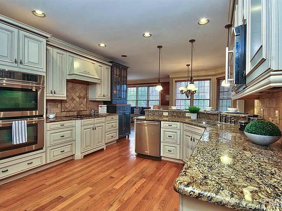 This elegant and secluded home will take your breath away. Nestled on nearly an acre, this 5BR/4Ba home features a dramatic family room with cathedral ceiling and 2-sided fireplace shared with screened porch. Gourmet kitchen complete w/ granite, stainless appliances and W/I pantry. Huge master suite offers tons of natural light, bathroom w/ garden tub and tiled shower and W/I closet. First floor formals have hardwoods throughout. Basement finished with kitchenette for guest suite or amazing man cave.