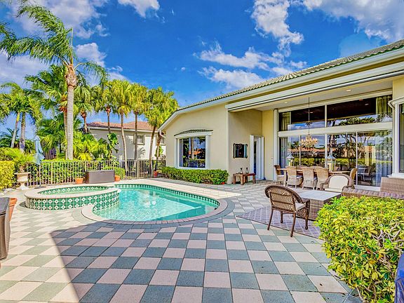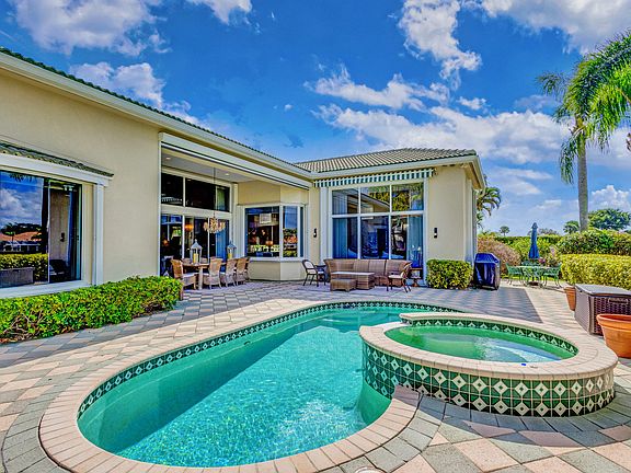 Welcome to this exquisite 4 bedroom, 4 bath + den home nestled in a serene cul-de-sac located in Ibis Isle. This rare gem offers a perfect blend of elegance, functionality, and tranquility, making it an idyllic retreat for discerning homeowners. As you step in the foyer, you're greeted with an abundance of natural light streaming through large windows and reflecting throughout the 14' high ceilings, casting a warm glow throughout the home. Renovations have been made in every room and the kitchen is host to Wolf under-over oven, Wolf gas top grill, Sub-zero refrigerator-freezer, Bosch dishwasher, white cabinets with granite tops and Restoration Hardware lighting. Real hardwood floors in all bedrooms and office, and updated bathrooms with seamless glass shower enclosures throughout. Exterior upgrades include: new landscape lighting, new irrigation pump, retractable awning, exterior painted, hurricane accordion shutters, Hayward pool cleaner. With its unparalleled location at the end of the park-like cul-de-sac, elegant updates and rare combination of water and golf course views with the setting sun just beyond, make this home a truly exceptional living experience. This lovely home is located in The Club at Ibis, renowned for its world-class amenities including three 18 hole Niklaus Family designed championship golf courses, one of which, Heritage Golf Course, is going through a complete renovation by the Niklaus Family and shall be ready for play in December, tennis/pickleball courts, a fitness center, spa, and 100,000 sf clubhouse with five fine dining options. Equity Memberships start at $100,000. Come see why it's the place to be.