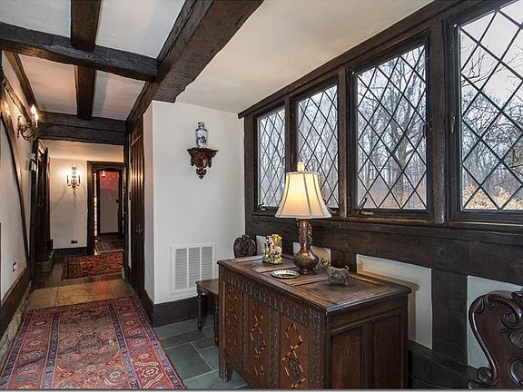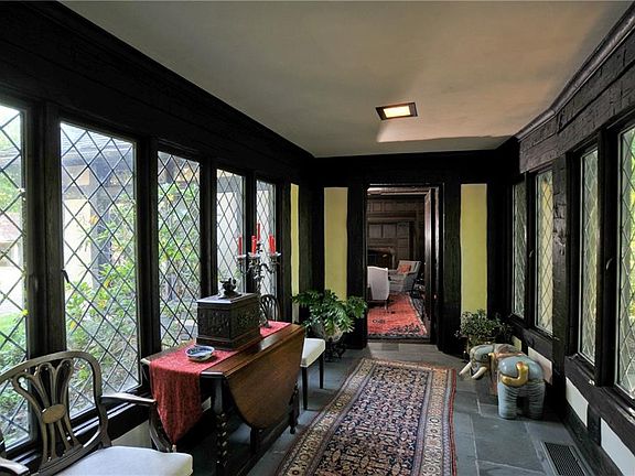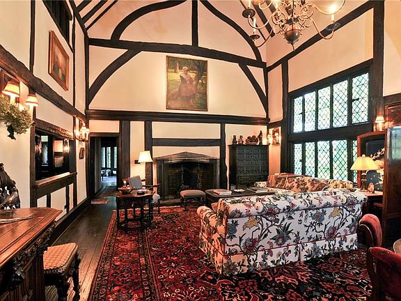 Spectacular Authentic English Tudor, on a very private estate overlooking the valley. This home, sited on 13.5 acres, is on the National Register of Historic Places. A few highlights of what this home has to offer are thick oak doors, authentic wrought iron, hand hewn wood beams, leaded glass and stainless windows. Beautiful maintained throughout, there are 5 bedrooms, 6 full baths and 2 half baths. The great room and dining room have each have beamed ceilings and very large fireplaces. The living room has paneled walls and There is a spacious and updated kitchen, ideal for entertaining. Accessed by a breezeway, the first floor master suites has his and her dressing rooms and spectacular garden views. The grounds are second to none, there are stone terraces that surround the house, there is a pool, pool house and clay tennis court. Originally constructed in Kent, England in 1472, this home is historically significant and will not disappoint.