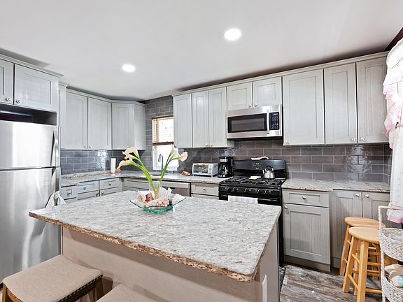 Nestled on a desirable corner lot in the highly sought-after Racetrack Section of North Bergen, this beautifully maintained single-family Cape Cod offers comfort, style, and convenience. Step inside to an inviting open-concept layout featuring a bright and spacious living room that seamlessly flows into a recently updated kitchen. Showcasing chic granite countertops, ample custom cabinetry, a stylish backsplash, and a center island perfect for casual dining or entertaining, this kitchen is the heart of the home. The main level also features two generously sized bedrooms flooded with natural light, along with a full bath. The finished basement—with its own separate entrance—adds exceptional versatility, complete with a summer kitchen, a full bath, laundry room, and abundant storage. Upstairs, a flexible space awaits—ideal for a dream bedroom, home office, creative studio, rec room, or simply more storage. Additional highlights include hardwood flooring, LED recessed lighting, central heating and cooling, and rare covered parking for up to two cars. The location is unbeatable—just 2 blocks from NYC-bound bus stops, near top-rated restaurants, vibrant shops, and the scenic 167-acre James J. Braddock Park. Only 7.3 miles from Times Square and a quick 30-minute drive to Newark International Airport, this is commuter living at its finest.
