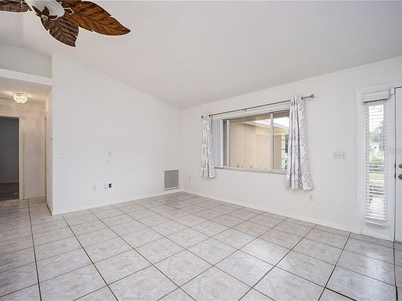 Chestnut 2/2/2 with Golf Cart Garage and plenty of storage! Home is located in Del Webb Spruce Creek Golf & Country Club Turnberry Subdivision. A very short walk to the Horizon Community Center, Recreational Games, Family Pool and Toppers Tavern Restaurant. Large, irregular lot. Designer drive and walkway. Open floor plan with split bedrooms. Vaulted ceiling in the main living area. Inside laundry room. Enclosed lanai. 2-car garage, sliding garage screens and key-less entry. Golf Cart Garage was added in 2002, New HVAC in 2010 and New Roof in 2013. 1 Year Home Warranty.