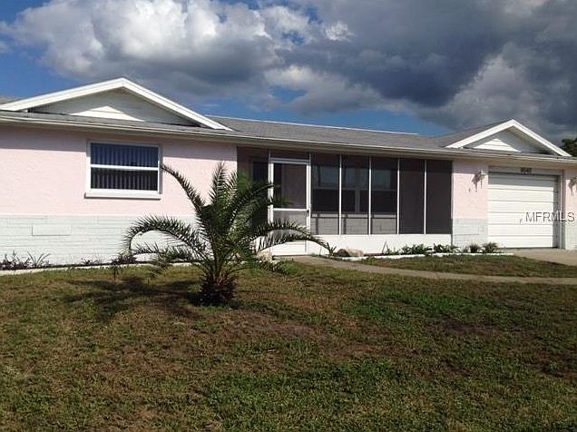 Nice home in Port Richey. Galley Kitchen with breakfast eating area, lots of cabinets & all appliances convey including washer & dryer. 1-car garage with separate entry, attic & laundry sink. Nice private & fenced lot. A front & back screened lanai with tiles. Master includes a master bath. Freshly painted throughout. Newer roof & hot water tank.