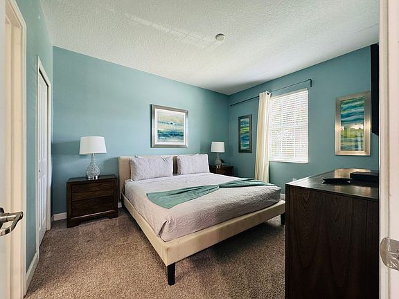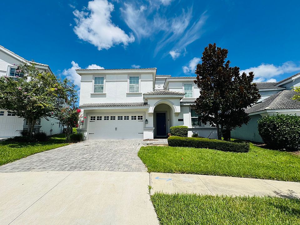 Luxury vacation home with private pool. FREE internet ,FREE lawn care! With 8 bedrooms and 5 bathrooms, located in Champions Gate. It comes fully furnished, with a private pool, a game room. Being a spacious location of 3,909 sq. ft, this home can comfortably accommodate up to 17! Pool and Spa are heated nice and warm .You will then come across the first floor that provides an open and spacious living room area with a large TV, a fully equipped kitchen, a dining table that seats 8 guests, and an outdoor breakfast bar that sits 6 a child feeding chair. On the first floor is a Master bedroom with a king size bed and another bedroom with a king size bed. One of the bathrooms has a door straight out to the pool for your convenience. The other 6 rooms are located in the upper level. Two themed bedrooms with twin beds in each, one room with a full bed and a pull out bed, two rooms with queen beds, and the last bedroom with a king bed! You will also find the family-styled share bathrooms which connects some of the rooms together. On this upper level is also where you will find a second living room with sofa bed, games room and indoor movie theater. You will have FREE access to the Champions Gate Oasis Clubhouse and they will assist you with pricing for the Golf Course. The activities in the Club House include: Resort style pool with a water slide and cabanas, Lazy River & Splash Park, Jacuzzi, Tiki Bar, Restaurant and Gym and more. Schedule for your future home now!