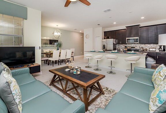 This property is a corporate rental. Please note that the monthly rental price for this property is dynamic and subject to seasonal adjustments. For an accurate quote, provide us with your intended move-in and move-out dates. ChampionsGate Resort Vacation Townhome - includes resort clubhouse amenity access! Our 4 bedroom, 3 bathroom, private vacation townhome is a great option for families wanting a home base to enjoy the best of all that Central Florida has to offer. * ChampionsGate Resort Private Townhome Sleeps up to 8 * 4 bedrooms/ 3 bathrooms * Private Splash Pool - North Facing * ChampionsGate Resort Gated Community * 10 miles to Disney World property * Fully equipped Kitchen with seating for 8 at the dining table, and 4 spots at the breakfast counter BEDROOMS (First Floor) - Bedroom 4 - One King Bed BEDROOMS (Second Floor) - Master Suite 1 - One King Bed / Attached Bathroom - Bedroom 2 - One Queen Bed - Bedroom 3 - One Twin and One Double Bed Pool & Spa Charges and Information: There is an additional optional charge of $20 per day plus tax to heat the pool. Please note that our pools are serviced on a weekly basis. Resort Parking Rules: The resort allows a maximum of 5 cars (or 3 large passenger vans). Do not block the sidewalk or park on the street or the resort will fine you. For visitors, there is a maximum of 10 cars per property. ChampionsGate Resort Amenity Access Included with Rental: We are pleased to offer two clubhouses at Championsgate Resort- this property is located closest to the Oasis Clubhouse It is a 9-minute walk or 2-minute drive to the Oasis clubhouse from this property address. * Huge resort-style pool with pool-side cabanas * Exciting water slide * Relaxing windy lazy river * Interactive children\'s splash park * State-of-the-art fitness center * Movie theatre * The Grille restaurant * full-service restaurant * 18-hole challenging golf course * Pool-side tiki bar * Playground * Volleyball courts Distances from Resort to Shopping & Attractions: * Walt Disney World - 10 miles * Universal Studios - 21 miles * SeaWorld - 18 miles * Orlando Airport - 30 miles * Atlantic Coast Beaches - 78+ miles * Gulf Coast Beaches - 84+ miles * Publix Supermarket - 2 miles * Walmart - 7 miles * Dining - 2 miles Why Choose this Rental? * Professionally managed to serve all your needs * Management company has over 26 years of experience hosting well over 200,000 families * Go straight to your rental with online email check-in * 24/7 on-call maintenance * No Resort Fees * Free On-Site Parking * Smoke-free and pet-free for your comfort * Towels and linens are provided * Complimentary WiFi * Additional Rental items Available (e.g., 3 & 4 burner BBQs, cribs, pack-n-plays, strollers, high chairs, etc.) Our starter welcome packet supplies: * 2 rolls toilet paper per bathroom * 2 round hotel-size bar soap per bathroom * 1 hotel-size shampoo/conditioner per full bathroom * 1 roll paper towel * 1 packet dishwasher detergent * 2 trash bags size-13-gallon * 1 small box laundry detergent (enough for one load) * Garbage can liners in each bedroom/bathroom small garbage cans Any supplies beyond this are up to the guest to replenish, we do not restock these items. No salt/pepper or cleaning supplies are stocked due to safety issues. This is an industry-standard practice. FOR GUESTS WHO BOOK 30 NIGHTS OR LONGER STAYS: (this does not apply if you are staying less than 30 nights) We will collect a $1,500 deposit. Balance is due 60 days prior to arrival If canceled 90 days or more before arrival, we keep with us $250.00. $1,250.00 will be refunded. If canceled between 61 and 89 days prior to arrival, we keep with us the $1,500.00 deposit. No cancellation or modification 60 days or less prior to arrival. Contact us to schedule a showing.