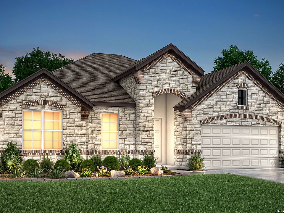 SPECIAL INCENTIVE PRICING $595,990! Move in ready NOW! Beautiful corner lot with TREES! Gated Community Located in Fair Oaks Ranch, Texas Elkhorn Ridge Excellent Boerne ISD Schools, Close to shopping and restaurants close by. Just Minutes from IH-10 and Fair Oaks Country Club. This Home has Tons of Upgrades! One Story with 3 bedrooms Study Media Room 2.5 baths two Car Garage. 12 ft Ceiling in Living room blinds included and covered patio. Back Yard has Beautiful Trees. Bay Window in The Dining Room. Featuring our Fabulous Entertainer Kitchen with White Cabinets, Includes Double Ovens gas cooktop with chimney style vent a hood pull out trash bins, Under cabinet lighting! Optional Wine Grotto!! Granite in Kitchen, Media room is prewired for surround sound! Beautiful Tile floors that look like wood! Carpet in Bedrooms and Media! Stone Fireplace to ceiling. Awesome Master Suite with Separate Tub and Walk in Shower. Come see this Beautiful One Story Home!
