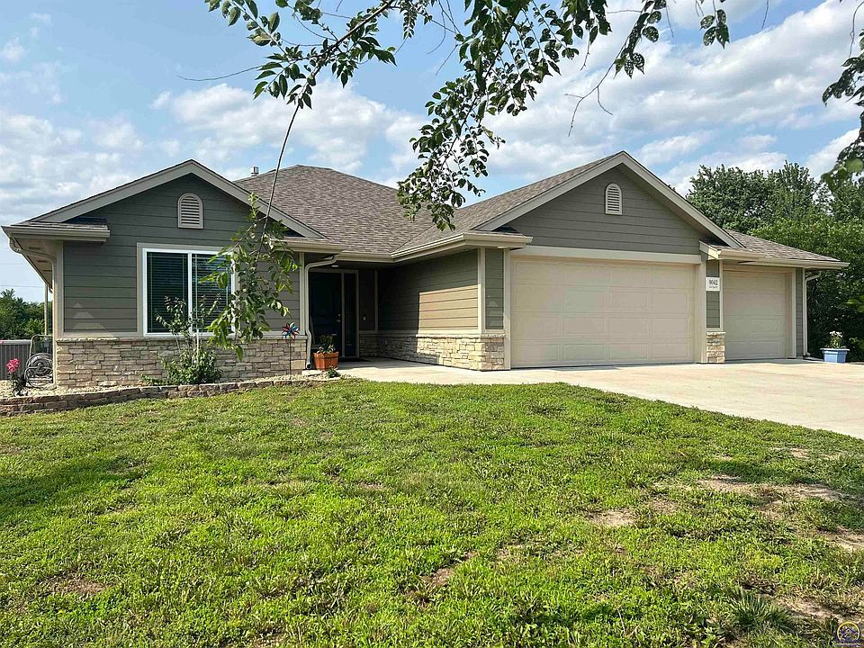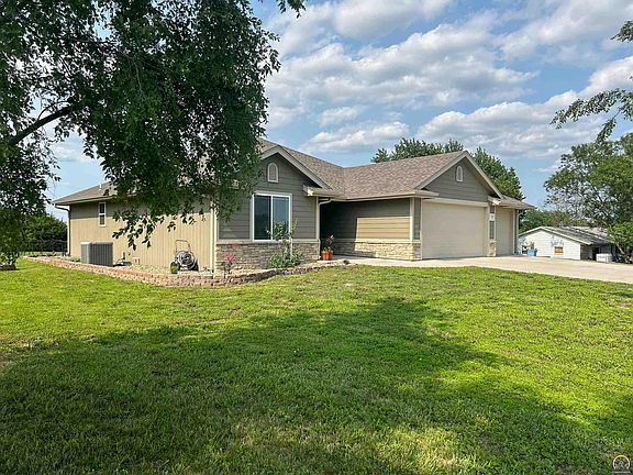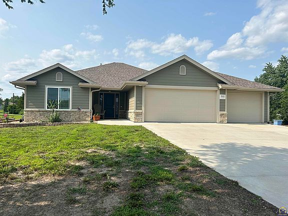 Welcome home to this 4 yr Dultmeier custom build featuring zero entry with 3 bedrooms, 3 full baths, 3 car garage on a 1 acre corner lot in Washburn Rural schools district ready for you! The 3rd lower level bedroom has its own en suite bath and the basement has unfinished space ready for your finishing touches, an egress window is in place for a future 4th bedroom. Kitchen boasts custom cabinets, SS appliances that stay, beautiful quartz counter tops, lg walk in pantry, solid surface bathroom tops, and much more, all to be expected with this type of quality home. Home owner had a whole house generator installed too! Come see today!