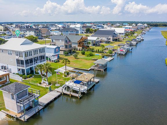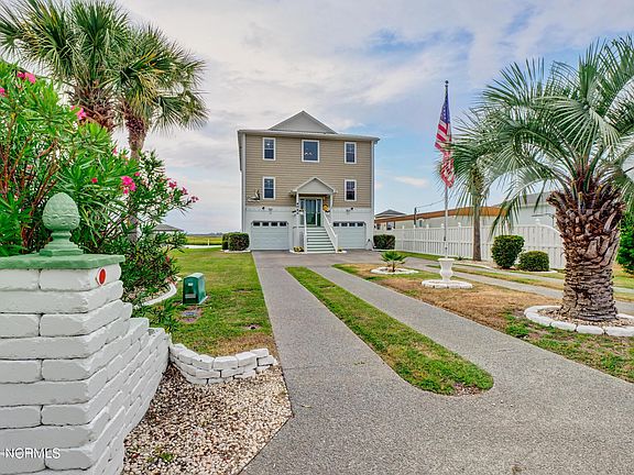 Unforgettable, move in ready, furnished Topsail Island retreat on a coveted deep water canal. Boaters paradise with quick access to the ICWW overlooking unobstructed, protected marsh views with plenty of wildlife. You can see for miles! Great location with Intracoastal, marsh and ocean views with tropical trees and ocean breezes!Enjoy the quiet beauty of the protected salt water marsh on the sound side of Topsail island. Scrunch your toes in the beach sand only five minutes away. Launch your boat for a day of salt water fun. Swimming, sunning, fishing and boating waterfront magic has it all for you! You can see Permuda Island Reserve awaiting your maritime adventures. Enjoy the Fall Y'all with true Stump Sound Oysters soon to be available at the local fish houses.No HOA, original owner occupied, well maintained home. Reverse floor plan with 4 Bedrooms, 3 full Bathrooms, 3 stop elevator and innovative space on the ground level. Outdoor Living is extended on everywhere! There is a 12x21 covered patio on the ground level. There is a screened porch on the 2nd story and the Gem is the 3rd story enclosed Sunroom! This IS Coastal Living at its finest!Great Views from all vantage points! The 3rd story Living Area featuring authentic birch hardwood flooring! The open design boasts great views from all living spaces. The kitchen has ample space and a walk in pantry. Plenty of storage and outlets lining the tile backsplash and under cabinet lighting shines on the Silestone Quartz countertops. 9 ft Vaulted ceilings accentuate the Great Room and give the open layout an endless feel with the wall of windows and 2 patio doors leading the the Sunroom with 6 foot windows rated for 120mph! It is all about the View! European 12x32 tiles and a separate heating and air unit for year round living! Best of all, it overlooks the 2 boatlifts! A 13K lb Golden and a 6K lb lift that could convert to a jet ski lift. The large stationary cleated dock (power and water supply) with attached finger dock and 6x8 floating dock with a custom swim ladder. Polymer Dura Thatch (rated to 140mph) on the Tiki bar and table, powder coated aluminum bamboo for durability and matching Tiki torches on the illuminated deck. 14ft concrete boat ramp. Mature Palms in the backyard with up lights make the Coastal nightlife sparkle! The public beach access is down the Street! This home is move in ready, all major furnishings stay. Personal items and paintings will be on a list that do not convey. This home is a Must See! Call for your appointment Today!