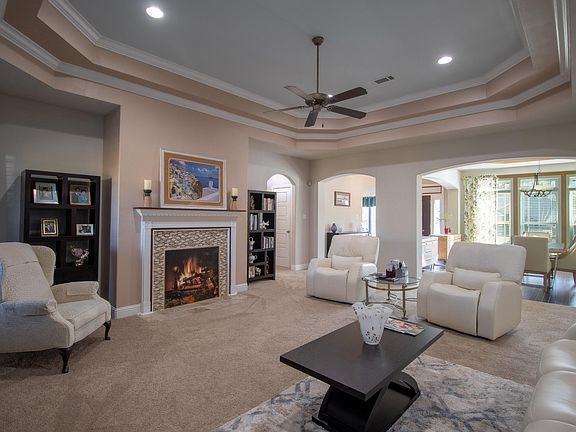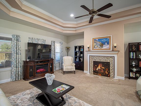 - Fireplace, Window Treatments, Attic Storage, Ceiling Fan, High Ceilings