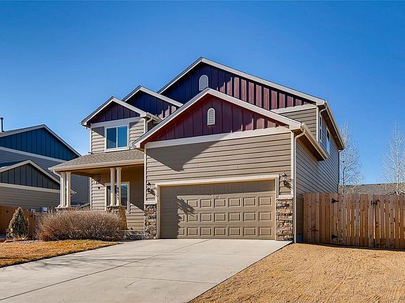 Beautiful 5-BR home in Firestone! So many new upgrades: new roof, new porch cover, new shed, all new interior paint, new cabinets, new carpet, new backsplash, all closets improved for added storage, new double shower in Master - too many improvements to name them all! Well cared for and in great condition. 4 bedrooms up with one in the basement. All baths have granite counters. Kitchen is open and beautifully finished. Great indoor/outdoor living thanks to a spacious patio, a great yard and a fire pit! Solar Agreement Transfers with the property.
