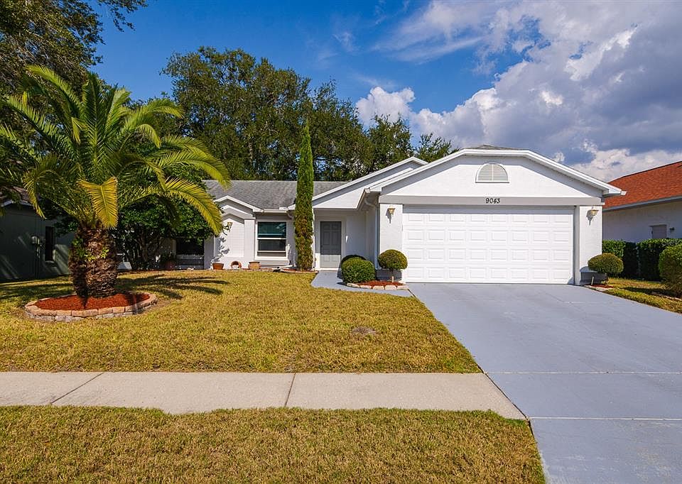 Welcome to this inviting pool home in the sought-after Fairway Oaks community—an ideal opportunity for snowbirds, first-time buyers, or anyone looking to create their perfect Florida retreat. This single-story ranch offers a spacious 3-bedroom, 2-bath split floor plan with a bright great room layout and 1,438 sq. ft. of living space. The open living and dining area flows easily to the screened lanai, where a large in-ground pool and covered patio overlook peaceful green space and a walking path—no rear neighbors, just a quiet and relaxing backdrop. There’s plenty of room for outdoor dining and lounging, making this space a standout feature of the home. Inside, you’ll find tile and laminate flooring throughout, a roomy primary suite with his-and-hers closets, and a private bath with a walk-in shower. While the kitchen and bathrooms are ready for a modern refresh, the home has solid bones, with the roof, windows, HVAC, and water heater all replaced during the 2012 remodel. Fairway Oaks offers low HOA dues, well-kept surroundings, and a convenient Hudson location close to shopping, restaurants, and medical facilities. If you’re looking for a home you can personalize while enjoying a great layout and a beautiful pool setting, this one is not to be missed.