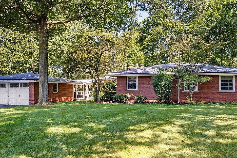 Talk about potential! This 3 Bedroom 2 bath Brick Ranch might need some updating, however some very important work has been done! New roof 10/23, new backup sump pump 07/24, newer boiler (approx 6 years), and drain tile system with warranty was installed in 2010. Large eat-in kitchen with lots of sunshine has a door that leads to the beautiful private backyard and patio/deck. Adjacent to the kitchen is a large family room with a natural fireplace. The finished basement also has a fireplace and a cedar closet. Behind the detached 2 car garage is a truly unique large airy pavilion with a stone grill, perfect for entertaining or everyday outdoor living. All this home needs is your personal touches and tlc!