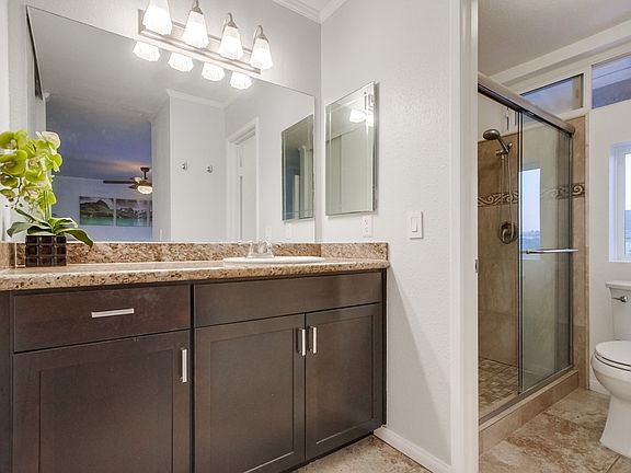 If you're looking for a peaceful place with stunning canyon views and coastal breezes, this North Mira Mesa home might be the one. It's a 4-bedroom, 2.5-bath with a beautifully updated kitchen, fresh paint, and a great layout that feels like a single-family home, only one shared wall! The backyard is private and fenced, with a grassy area, fruit trees, and a patio cover added in 2021, perfect for relaxing or entertaining. Included: Refrigerator, Washer & Dryer, Water Softener, Drinking Water Filter Available. Attached 2-car garage, and access to the community pool, BBQ area, and hiking trails. It's just a quick drive to Mira Mesa shopping, restaurants, the Miramar base, and less than 25 minutes to the beaches in La Jolla and Del Mar. Rent is $4,500 a month, with a matching deposit. Pets are welcome with a refundable pet deposit $500 per pet. The landlord covers the gardener; you just take care of water and utilities. The home is move-in ready, so if you're looking for something beautiful and well-located, this might be it!