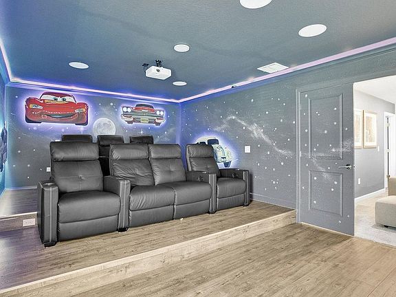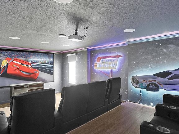 Welcome to this stunning 8-bedroom, 5-bathroom vacation pool home located in the prestigious ChampionsGate Resort. This private retreat offers a south-facing pool with no rear neighbors, ensuring privacy and relaxation. The home features themed rooms, including Avengers, Cars, Monsters Inc, and Star Wars, providing a unique and fun experience for families. With a fully equipped kitchen, seating for 8 at the dining table, and 4 spots at the breakfast counter, you'll feel at home in this spacious property. The home boasts a fully equipped kitchen, perfect for preparing meals and enjoying family gatherings. The themed game room includes a pool table, foosball, air hockey, and an arcade game, while the Cars-themed theater room offers entertainment for all ages. Themed bedrooms add a touch of magic to your stay, making it an unforgettable experience. Optional pool heating is available for an additional charge of $30 per day plus tax. The resort allows a maximum of 5 cars or 3 large passenger vans, and visitors can bring up to 10 cars per property. Additional rental items such as BBQs, cribs, pack-n-plays, strollers, and high chairs are available for rent. A BBQ is provided for guest use, but guests must refill the propane tank and clean the BBQ upon departure to avoid a $56 cleaning fee. Situated just 10 miles from Disney World, this home offers easy access to Central Florida's top attractions. ChampionsGate Resort features two clubhouses, a resort-style pool with cabanas, a water slide, a lazy river, a children's splash park, a fitness center, a movie theater, and more. The Retreat Clubhouse is just a 2-minute drive or 7-minute walk away. Nearby shopping and dining options include Publix Supermarket, Walmart, and various restaurants within 2 miles. The property is smoke-free and pet-free for your comfort. Complimentary WiFi is provided, and towels and linens are included. Guests can enjoy free on-site parking with no resort fees. The property is professionally managed with 24/7 on-call maintenance and online check-in available. A starter welcome packet is provided, but guests are responsible for replenishing supplies beyond the initial stock. Security cameras are located at the front entry.