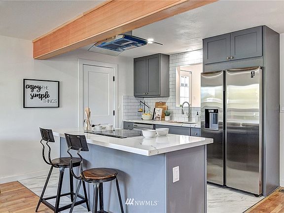 Stunning Remodel! This hidden treasure is nestled near a friendly park and is only a stone's throw away to Hwy 509 & 99! The features of your new home will surely amaze your friends while you entertain, inside or out. This charming fully re-imagined rambler comes with a new kitchen, baths & flooring throughout. The fresh coat of white paint allows for the sunlit rooms to shine brightly during the day. This home also features a bonus family room with an elegant wood-burning stove for those chilly winter evenings. You wont want to miss the overly spacious driveway, two garages, and the secluded backyard complete with a large deck that is perfect for relaxing or enjoying barbeques with friends. Welcome Home!