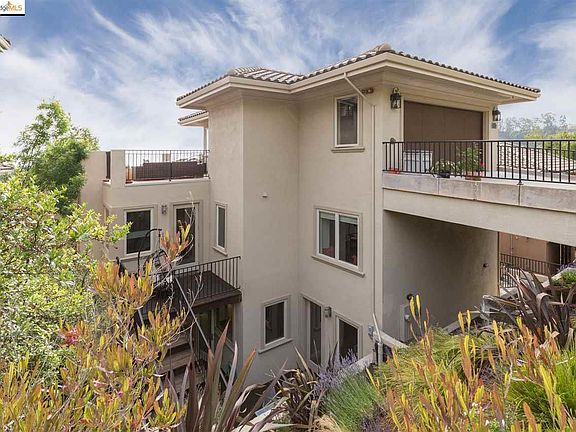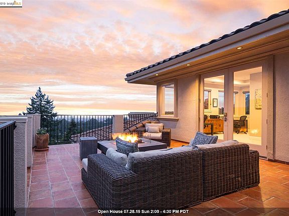 Open House Sun 2-4:30 PM. Located just above highly desirable Montclair Village, this chic 5+ bedroom, 3++ bath home is sure to captivate with its sophisticated style. As you descend the front stairs to the main entry, views of San Francisco and The Bay beckon. Inside, hardwood floors, tall ceilings and natural light set the stage. The main living level features gourmet kitchen with island, tiled flooring, stainless steel appliances and pantry. The dining room opens to large outdoor patios on either side - perfect for indoor/outdoor entertaining. The grand living room features fireplace with floor-to-ceiling stone surround, picture windows overlooking San Francisco Bay and a patio overlooking the twinkling city lights beyond. Upstairs, 3 large bedrooms include the luxurious master suite. A large bonus room with built-in cabinetry and walk-out balcony is a perfect spot to watch the sunset. The media room with access to the rear yard is fabulous for entertaining.