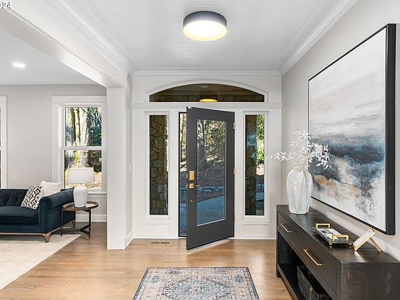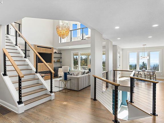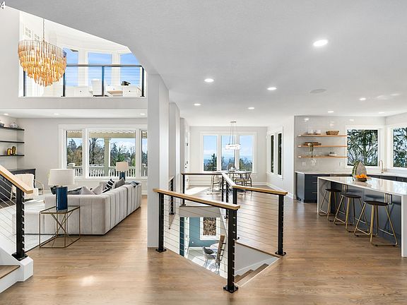 Peace and serenity define this newly renovated property perched on a quiet dead-end street with unencumbered city and valley views. Almost no surface was left untouched during the thoughtfully designed and beautifully executed remodel that skillfully satisfies modern lifestyle demands and expectations of luxury. The grand entry welcomes you home to a life well-earned with elegant millwork, designer light fixtures, fresh paint, and new red oak hardwood floors. Vaulted ceilings and walls of windows create a bright inviting ambiance, enhanced by the natural light and scenic views of the valley. Hosting friends and family is effortless with expansive formal living spaces and a completely redesigned gourmet kitchen showcasing custom cabinetry, gorgeous quartz countertops, a waterfall island, all-new high-end appliances, elegant fixtures, and a hidden walk-in pantry. The smartly designed and hard to find floor plan features four spacious bedrooms, all located on the upper level, including a primary suite worthy of envy. The daylight basement boasts a movie theater room equipped with surround sound, a home gym, and private guest quarters. Envision starting your day by savoring a cup of coffee while immersing yourself in the sweeping views from one of the expansive back decks, and subsequently unwinding with your evening glass of wine as you watch the sunset. The prime location offers a safe and picturesque neighborhood with convenient access to extensive hiking and walking trails, Mill Pond Park, highly rated schools, coveted NW 23rd, and downtown Portland. The level flat yard, five-car-garage, flexible floorpan, new HVAC, newer roof, new appliances, new designer fixtures, new flooring, new interior and exterior paint, and Forest Height's tight knit community rounds out the list of reasons this is the dream home you've been waiting for! [Home Energy Score = 1. HES Report at https://rpt.greenbuildingregistry.com/hes/OR10187917]