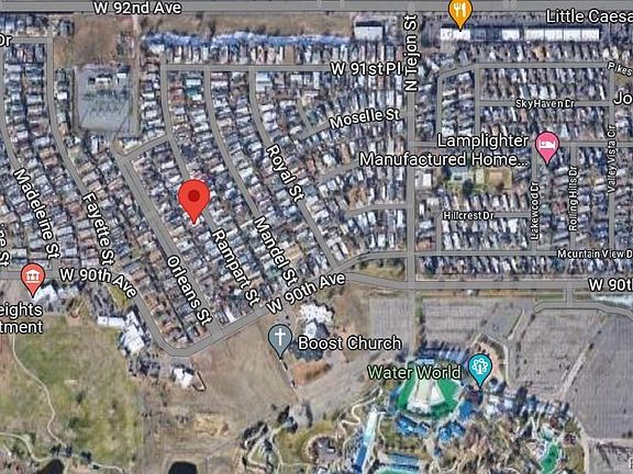 Opportunity knocks for the right buyer. Discover the potential with this lot in Monticello. Create your own affordable housing or investment.This property is being sold as-is, with all the value in the lot. Water tap and sewer line are already in place. The existing mobile home stays and will be transferred with the land purchase. Buyers can choose to renovate or remove it. Any personal property left at closing will become the buyer's responsibility. The mobile home is sold as-is, requiring special financing or a cash transaction. Seller is not intending to make any repairs. This prime location near 92nd and Federal offers easy access to shopping, Water World, and I-25. Don’t miss this unique opportunity to invest.