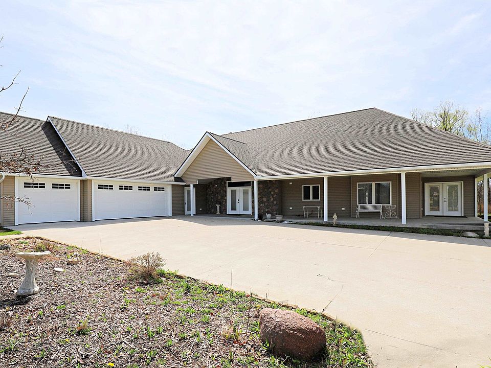 This custom ranch boasts luxury and functionality with it's 5/6 bedrooms, each featuring their own private bathroom with walkin showers. This cul-de-sac street setting offers a screened gazebo, raised bed gardens and a wooded wildlife setting. Immaculate and spacious with cathedral ceilings and quality construction. Main floor laundry is equipped with washer, dryer and builtins. Gourmet granite island kitchen features maple cabinetry and 2023 stainless steel refrigerator. Pella windows and doors. Water and air filtration systems plus whole house generator. Several master bedrooms possible. Enjoy covered patios, day window lower level ready for finishing, new roof and gutters (2023). Huge heated 3 car garage. Thoughtful design and accessibility ready for handicap adaptable living spaces. 3 furnaces and 3 central air. All doors 36" wide.