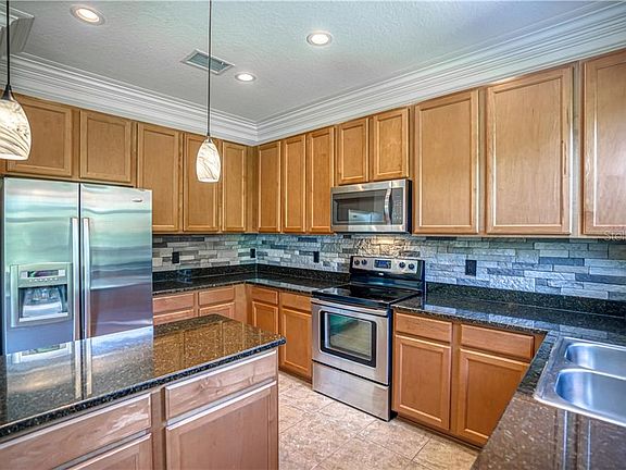***CLICK VIRTUAL TOURS*** This spacious 4 bedroom 2.5 bath home in the Creekside Preserve gated community is full of upgrades and very well maintained. After walking through the large entryway you're presented with an open-plan living area built with entertaining in mind. Everything you need for having family and friends in town can be found in this home from the Cascade Maple Spice cabinets and the granite countertops to the stainless steel appliances and the large kitchen island for cooking and socializing. The kitchen looks over into the living room next to a room that can be used as a formal dining room with beautiful chair rail paneling. Main floor living areas have been improved with large crown molding adding a stately appeal to each room. All bedrooms are located on the second floor which includes a large bonus area suited for a kid's play area or an office. The master suite includes a deluxe bath including a garden tub, walk-in shower with upgraded tile, dual vanities, and two closets for plenty of comfortable space. Outdoors you'll find a covered rear lanai for entertaining no matter what the weather is like, and a large backyard for when the weather is just right. The community includes a playground and several ponds so you have more than your backyard available for play. This home is located right new Publix and the Prime Outlet Mall as well as many great local restaurants. Very near I-75 and the new Fort Hamer Bridge making it a quick ride to the water, and the new UTC mall area and everything this area has to offer. Come see this property today!