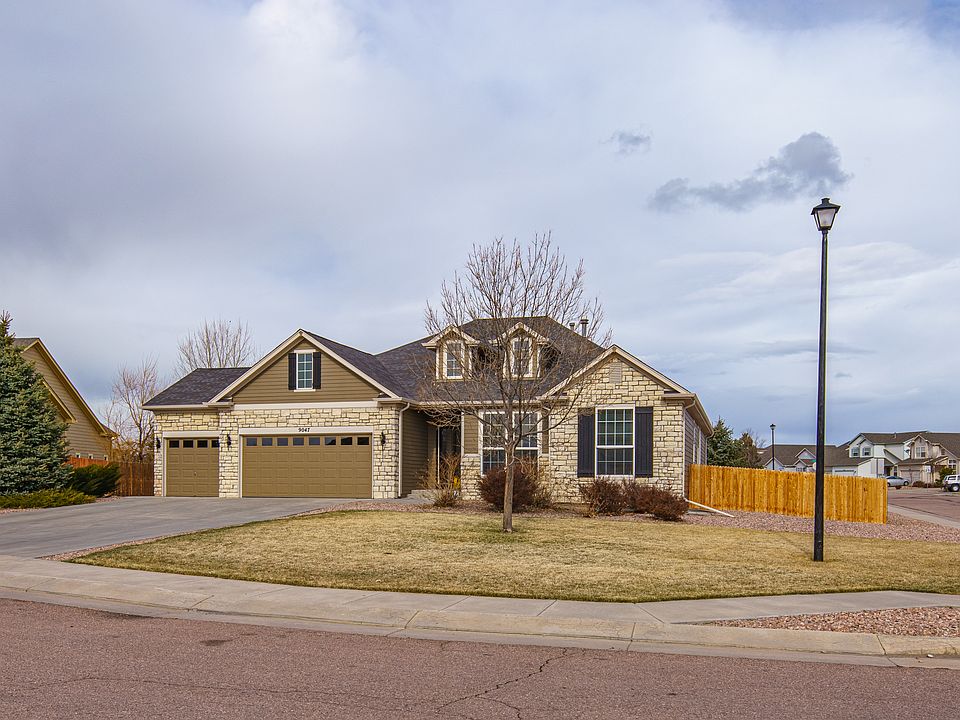 Enormous beautiful home on corner lot. Wonderfully maintained and updated 5,038 sf rancher w/finished basement. As you enter the home you will be taken aback by the open floor plan with TONS of natural light coming in from all the large windows, hardwood floors that extend throughout all the common areas and soaring 12' ceilings. Off the welcoming foyer are French doors opening into the sunny office/den. There is a huge living room with stone surround gas FP and picture windows overlooking the deck and fenced backyard. You will LOVE the updated kitchen - complete with stunning granite counters, eat-at island, tile backsplash, high-end cabinets, gas cooktop, pantry, breakfast nook. Adjacent is the large formal dining room. Tucked away in the rear of the home is the master w/vaulted ceilings, walkin closet and 5pc ensuite: tiled shower w/new door, oval soaking tub, and raised double vanity w/new sinks! This level also boasts 3 more bedrooms, hall bath, laundry room and access to 3car garage! Gigantic basement has been recently finished to include plenty of room for extra living/entertainment: Family room w/full granite wet bar w/tile backsplash, wine fridge, sink. Exercise nook, pool table/game area, storage room, 2 oversized bedrooms - one w/attached bath - perfect 2nd master! Conveniently located on 1/3 acre lot across from a park, close to schools, golfing, rec center/pool and minutes from military bases