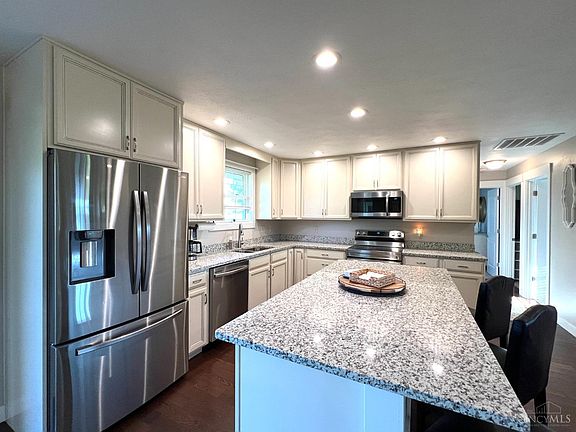 Welcome to your dream home! This newly remodeled 3-bedroom, 2-bath ranch features a stunning open floor plan combining the kitchen, dining, and living areas with beautiful hardwood floors throughout. The kitchen is a chef's delight, boasting granite countertops and custom cabinets. Step outside to enjoy the serene ambiance of the covered front porch or relax on the back patio. Each side of the house is shaded by a large mature maple tree. The property offers a picturesque view of a nearby agricultural field and a distant view of the charming courthouse clocktower. The primary bedroom is a true retreat with an ensuite bathroom featuring a large shower and an expansive walk-in closet. This home is move-in ready and has been tastefully remodeled with attention to detail. An attached garage and carport make storage and parking a breeze. Don't miss out on this incredible opportunity! Seller is relative of listing agent.